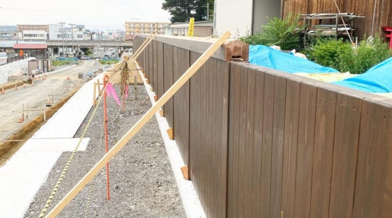境内地と新県道の境に立つ、転落防止用の木柵も少しずつ形が見えてきています。