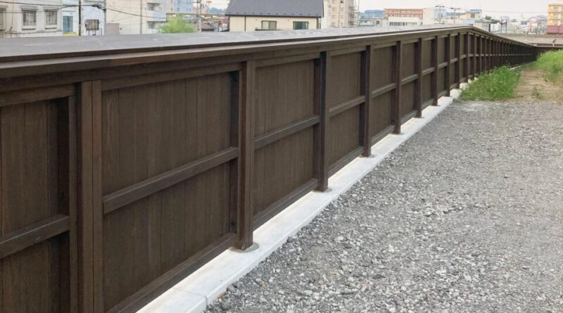 八戸三社大祭龗神社発祥三百年事業の一つ、新道との境界に立つ転落防止用板塀もほぼ完成のようです。
