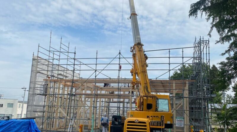 八戸三社大祭の龗神社行列祭具を収蔵する祭器庫建設工事も徐々に形が見え始めました。