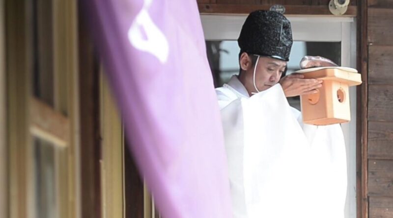 令和二年葉月二日八戸三社大祭龗神社中日例祭4本日は昨日の鍵のない御扉開扉の次、献饌です。献饌(けんせん)とは、神饌(俗に言うお供えもの)を神様に献奉る事です。地鎮祭や安全祈願祭などを経験された方は、陶器のフタを神職が開けているのを見た事があるかも知れませんが、それが献饌です。但しフタを開ける献饌のやり方は省略されたもので、本来の献饌はやり方が異なります。本来は三方を神職がリレー形式の様に手渡しで伝達し、本殿御扉内に供えるのが献饌のやり方で、龗神社では大祭の時にはこのやり方で献饌しています。この方式は神職の人数が必要で、神職の少ない龗神社では普段から行う事は難しいので、応援をお願いしている大祭時のみ実施できています。神饌は最初から神前に供えられているのではなく、神饌所という所にあり、その三方を伝達して本殿まで運び入れるイメージです。三方は目通(めどおり)と言って、目線の高さに持ち、三方のフチに指を引っ掛けない様に持たなくてはなりません(写真1)。神職から神職に渡す際、受け取る側は相手の手の上に自分の手を置く様な感じで手を添えて、渡し終わった神職はゆっくり手を抜き取る様な感じになります(写真2)。この時手に汗をかいていると相手に申し訳ない気持ちになります。三社大祭は8月なので、私自身汗をかいて相手にゴメンなさいと思いながらやってますが、相手も熟練とあって、うまく手に触れない様に渡してきたりします。その時はありがたくも、そんなに嫌がらなくてもいいじゃん!と切ない気持ちにもなります。神饌を受け取る側、渡し終わった側は、神饌に対して礼をします(写真3)。これは、神をもてなす意味を持つ神饌が、それだけ重要なもので神聖と考えられているからで、目通りに持つのもその意味です。また、清い神饌をツバや鼻息で穢さない様にという意味もあると聞いています。最後は大床の神職が本殿御扉内に供えます。フタがあるものはこの時外します。大床は足の裏をついて立ち上がらず、膝を擦って移動回転しながら行います。なので、正座が苦手な私は、息を切らせながら足の痺れに耐えて行っています(写真4)。10台の三方全てを供えたら、正中を向き、拳を握って膝前につきます。これが合図となって、他の神職は笏を持ち、順番に本座に戻る事になります。以上が献饌の紹介です。明日は祝詞奏上からの御紹介です。#神社 #龗神社 #法霊山 #法霊山龗神社 #八戸三社大祭 #八戸三社大祭龗神社発祥三百年 #八戸三社大祭2020 #八戸三社大祭中日 #祭り #祭り好きな人と繋がりたい #献饌 #献饌の儀 #例祭 #例大祭 #神饌 #神饌物 #神饌所 #三社大祭 #三社大祭2020 #三社大祭中日 #三社大祭龗神社発祥三百年