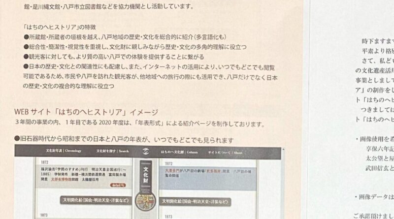 昨日、古文書などは共有財産として誰でも活用できるようにあるべきと書いた矢先、今日打ち合わせにいらっしゃった方から、文化財等のデジタル媒体掲載に協力してほしいという話が来ました。八戸市指定の文化財などをウェブサイトに掲載し、八戸市の歴史文化を発信していく文化庁支援事業だそうです。主にインバウンド対応だそうですが、もちろん日本語でも記載されるそうです。龗神社の八戸市指定文化財の中から️太公望屋台山車️武田信玄屋台山車️享保六年記年銘鉾先の3点を掲載する同意書に印鑑が欲しいとの事で、掲載許可しました。屋台山車は以前にも紹介しましたが、享保六年の鉾先というのは、八戸三社大祭の起源である龗神社神輿渡御祭の第一回の折に奉納されたもので、現在神社にて保管しているものです。いつか写真も紹介したいと思います。3点とも八戸三社大祭に関連するものの掲載許可という事で、写真素材があれば提供をお願いしたいという事でした。しかし神社では、素人レベルの写真しかないので、困った時の教育委員会社会教育課頼みという事で、そちらから貰ってくださいと伝えたところ、すでにお願いして提供してもらう事になっていると。社教のT課長と頻繁に来て頂いているKさん、本当にいつも迷惑ばかりかけてすいません。#神社 #龗神社 #法霊山 #法霊山龗神社 #八戸三社大祭 #八戸三社大祭龗神社発祥三百年 #三社大祭 #三社大祭龗神社発祥三百年 #文化財の活用 #八戸市指定文化財