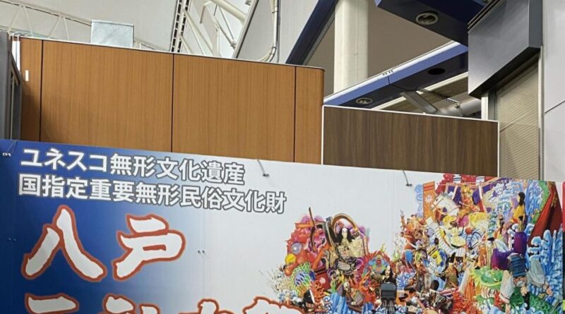 JR八戸駅新幹線改札内の八戸三社大祭看板