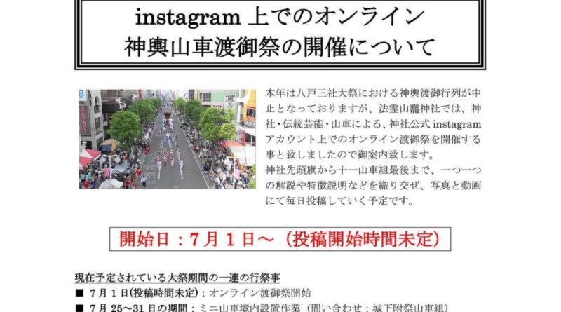 続きを読む本日、八戸三社大祭の龗神社行列の、Instagramオンライン神輿渡御祭に関するプレスリリースを公開致しました。市内報道関係各社に於かれては、八戸市庁広報統計課に依頼してございますのでご確認くださいましたら幸いです。 以