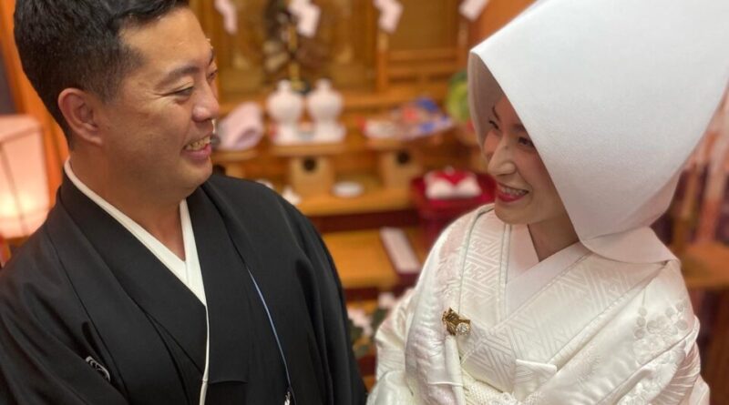 令和五年7月8日T家・K家 神前結婚式於:八戸プラザホテル本館神殿新郎新婦、御両家の皆様に於かれましては、此の佳き日の素晴らしき結婚式を寿ぎ、衷心より御慶び申し上げます。神代の昔より続く様式美に彩られた式の中、お二人の輝