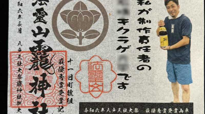 十一日町龍組の最優秀賞・県知事賞受賞を祝した御祝儀付き限定御朱印の御案内令和6年八戸三社大祭に於いて、龗神社附祭山車組「十一日町龍組」が山車審査で最優秀賞を受賞した事を祝し、此の度龗神社では山車組に対する御祝儀付きの限定